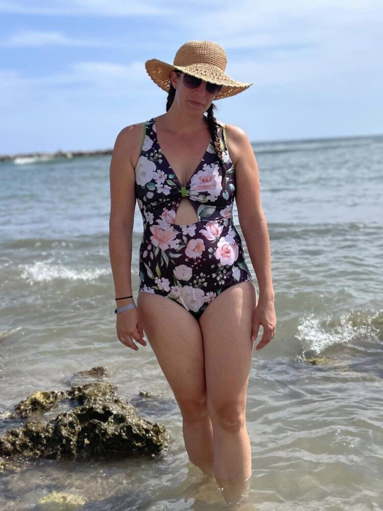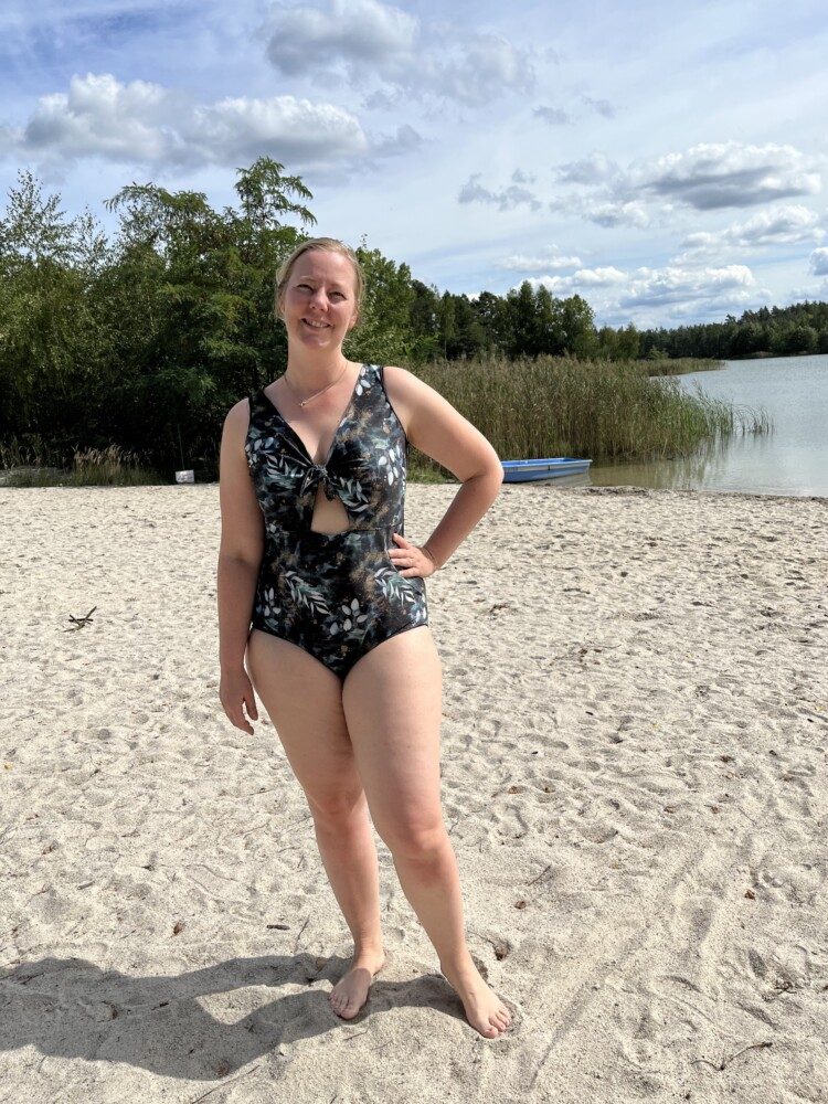 Mit diesem Schnittmuster kannst du wählen, ob du lieber einen Badeanzug oder einen Bikini nähen möchtest. Der Grundschnitt für beides ist enganliegend und hat tief sitzende Beinausschnitte. Der Rücken hat einen hoch liegenden Rundausschnitt und optional einen dreieckigen Cut-out. Das Vorderteil wird um die Brust gerafft, was alles sowohl schön einpackt, als auch hervorhebt. Natürlich hast du die Möglichkeit hier auch Cups einzunähen. Das Oberteil sollte zumindest vorn gefüttert werden, verschiedene Verarbeitungsvarianten werden dir im Ebook und auf dem Youtubekanal gezeigt.