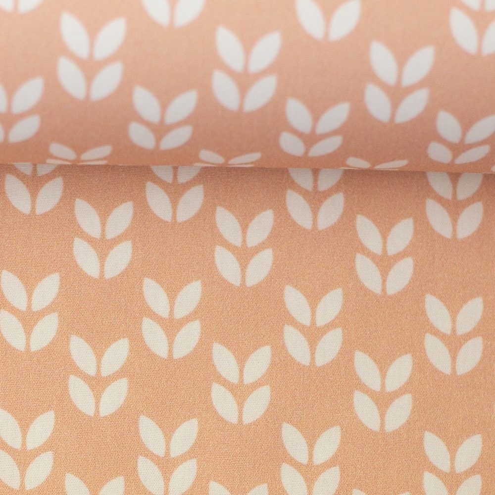 Baumwolle Webware „Kansas“ – Blätter, naturweiß/apricot
