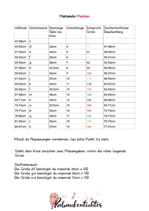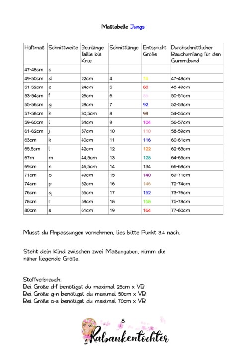 Größe 74-164 ( HU Mädchen 47-87cm, HU Jungs 47-80cm)
