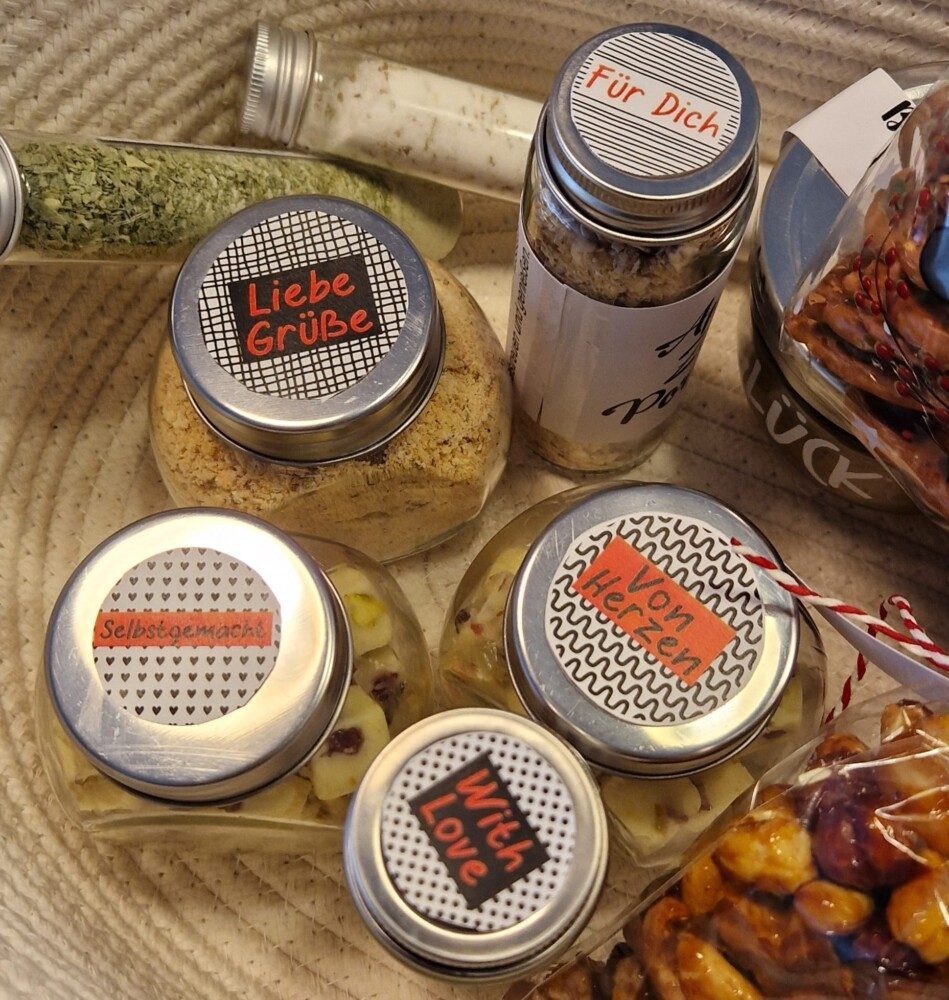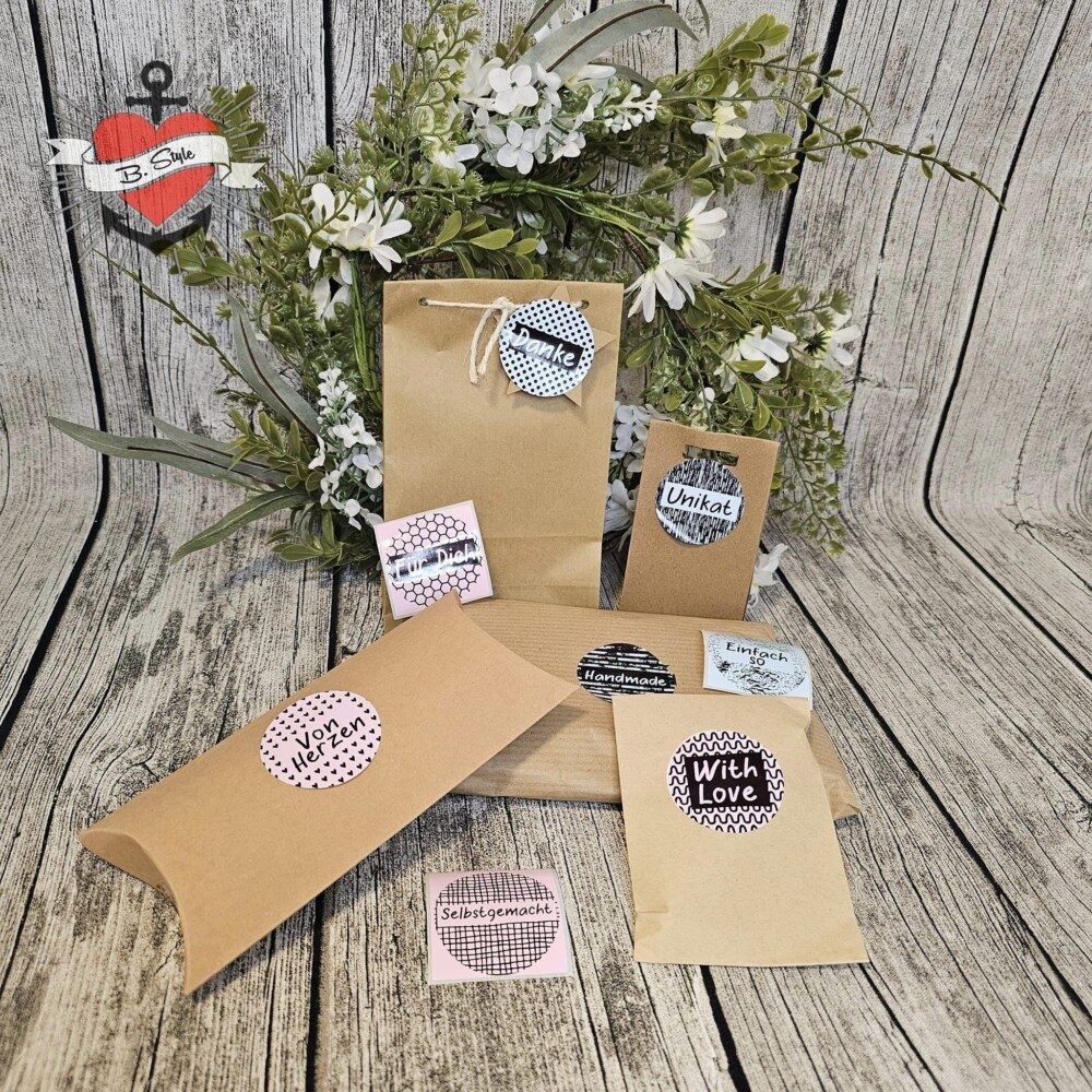* 9 runde gemusterte Hintergründe zum kombinieren mit 9 Sprüchen: Für Dich, Unikat, Handmade, Selbstgemacht, Liebe Grüße, Einfach so, With Love, Von Herzen, Danke