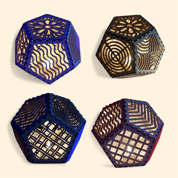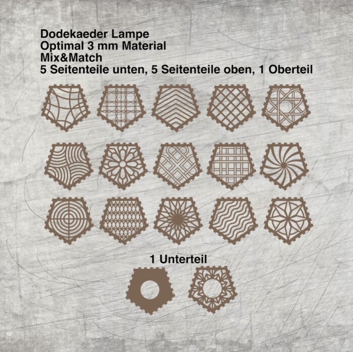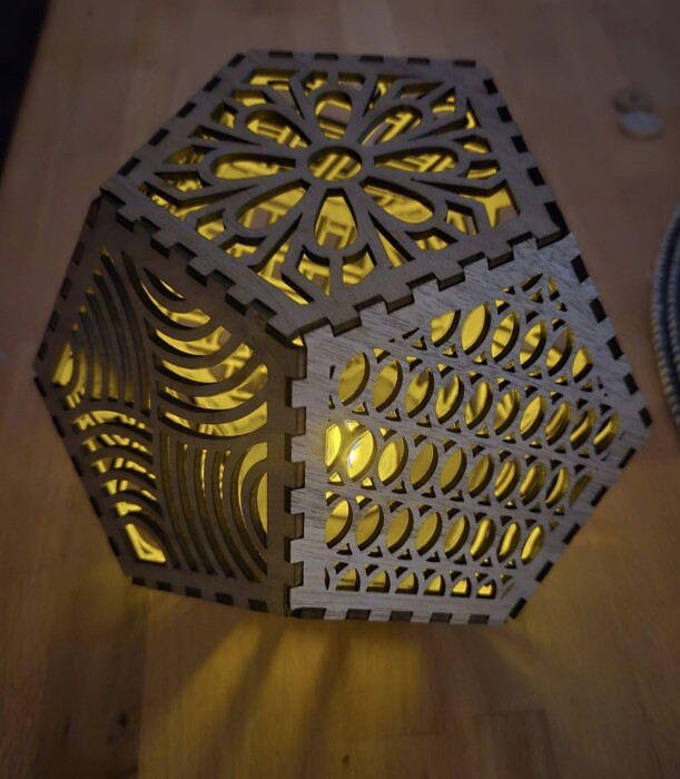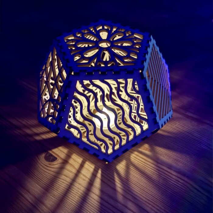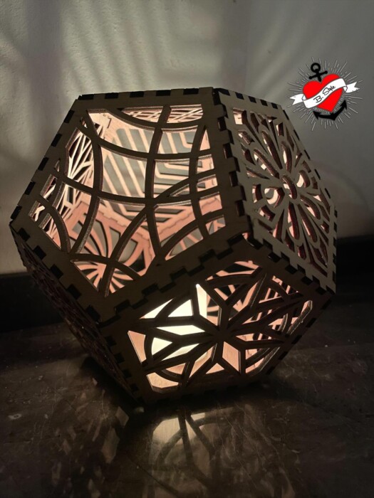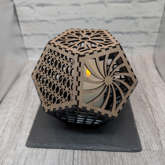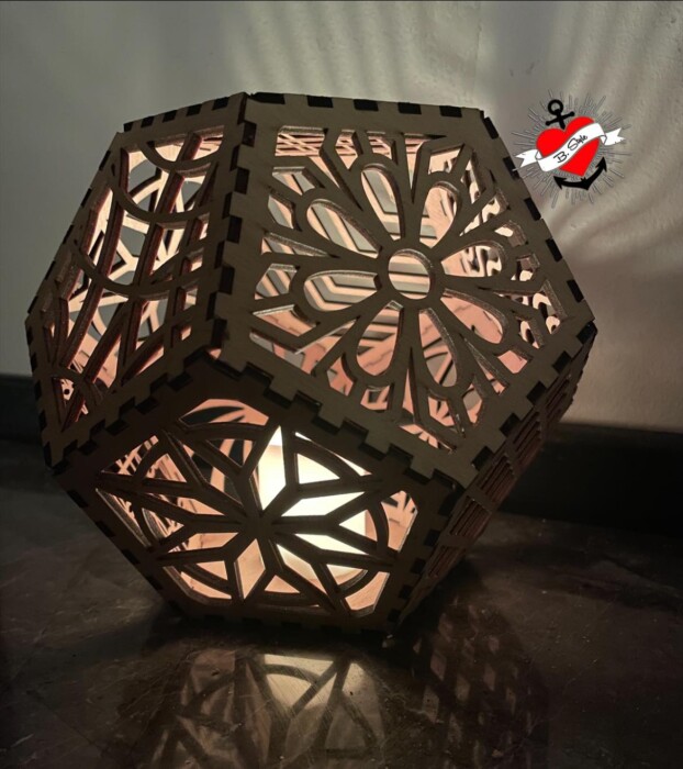 Laserdatei für den Bau einer Lampe/Windlicht mit 12 Seiten, optimale Materialdicke 3 mm,