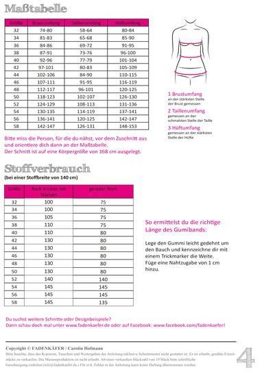 Dieses eBook beinhaltet die Anleitung und die Schnittteile, um einen Rock zu nähen. Der Schnitt ist für