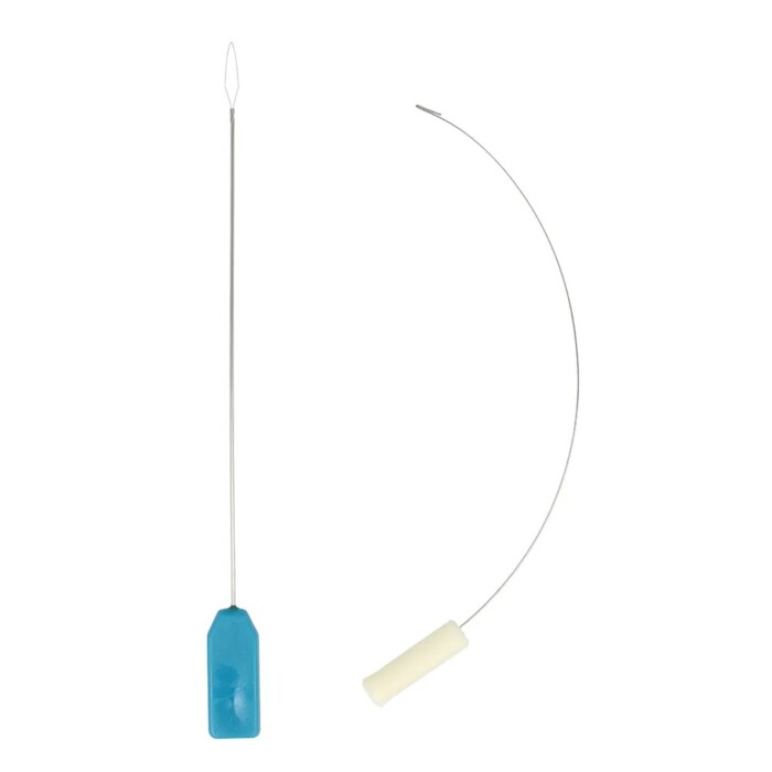 Das Set besteht aus einem Einfädlern für die Greifer und einem Einfädlern für die Nadeln. Mithilfe des Häkchens, das sich ganz vorne am Draht befindet, führst du einfach den Faden durch die Öhre der Greifer bzw. durch die Nadelöhre. Dank der Länge von 12 cm sind die Einfädelhilfen ideal für die Overlockmaschine, können aber selbstverständlich auch für Haushaltsnähmaschinen verwendet werden.