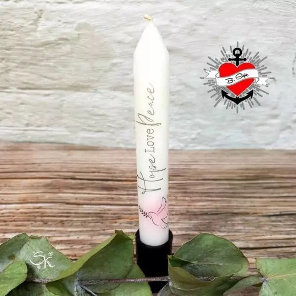 * Friedenslicht, Hoffnungslicht. Frieden für alle, Make Love not war, Hope Love Peace, Choose Peace & Friedenstaube