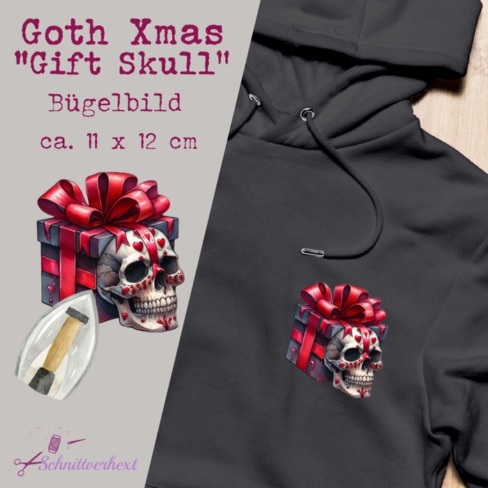 Goth Xmas Bügelbild “Gift Skull“
