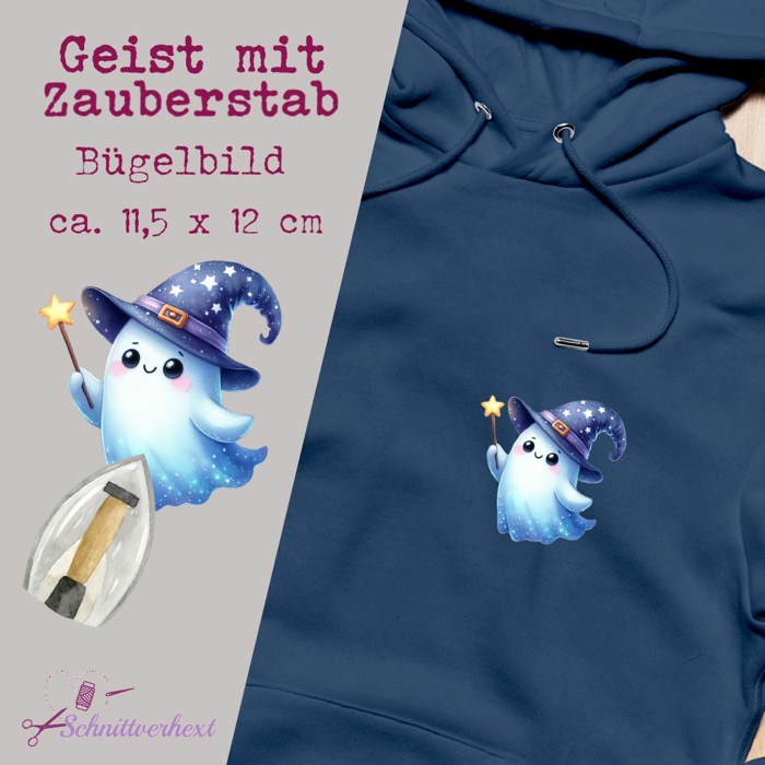 Halloween Bügelbild “Geist mit Zauberstab”