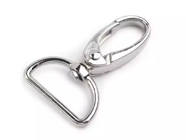 Drehbarer Metallkarabiner ist zum Befestigen von Gurten an die Taschen oder Handtaschen bestimmt oder zur Herstellung von Schlüsselbändern.