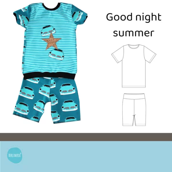 Mit diesem Ebook könnt ihr eurem Kind einen gemütlichen Sommer- Schlafanzug in den Größen 68-122 nähen. Er besteht aus einem kurzärmeligem Oberteil und einer kurzen Hose. Diese könnt ihr mit Bündchen oder Gummizug am Bauch nähen. Dieser Basic- Schnitt ist auch für absolute Nähanfänger geeignet und kann beliebig „gepimpt“ werden. Das Oberteil ist so geschnitten, dass es auch als Alltags-Shirt genutzt werden kann. Die knielange Hose ist so geschnitten, dass auch bei unruhigem Schlaf nichts einengt oder verrutscht.