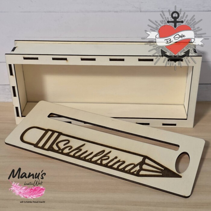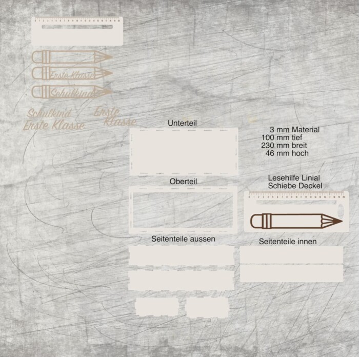 * Zusätzlich zum lasern mit 3 mm Material eine Box in die das Lineal als Deckel geschoben werden kann.