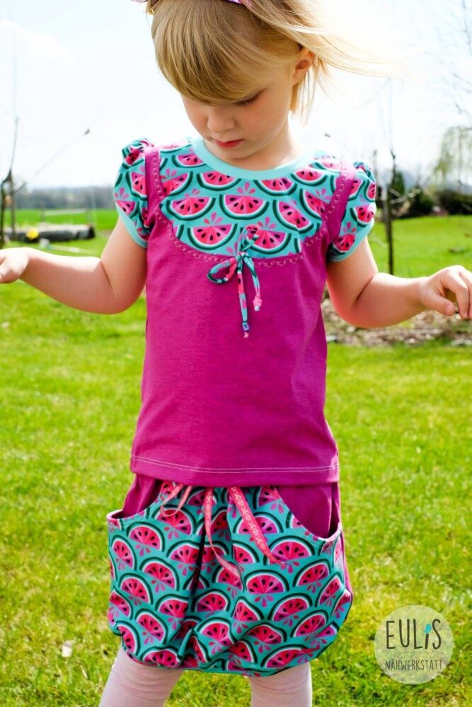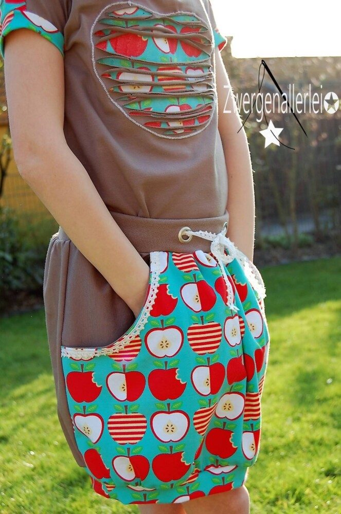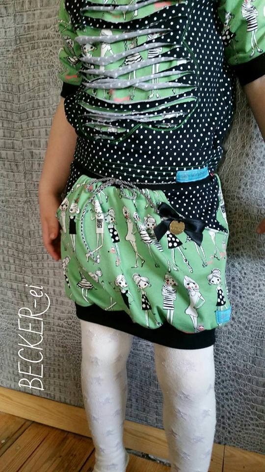 Das Röckchen kann sowohl aus Jersey als auch aus Baumwolle o.ä. genäht werden…