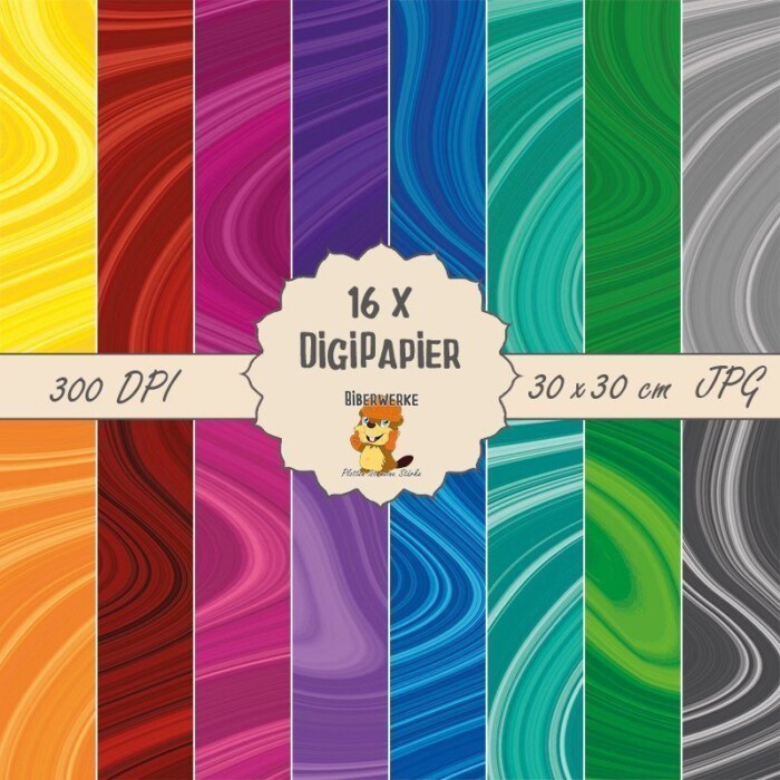 Das Set besteht aus 16 verschiedenen Papieren im Format 30x30cm mit 300 DPI Auflösung. Dateiformat ist JPG.