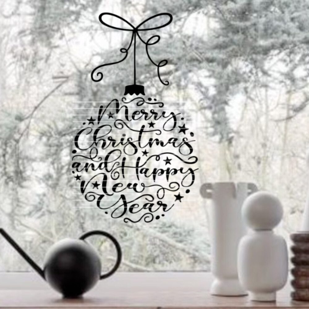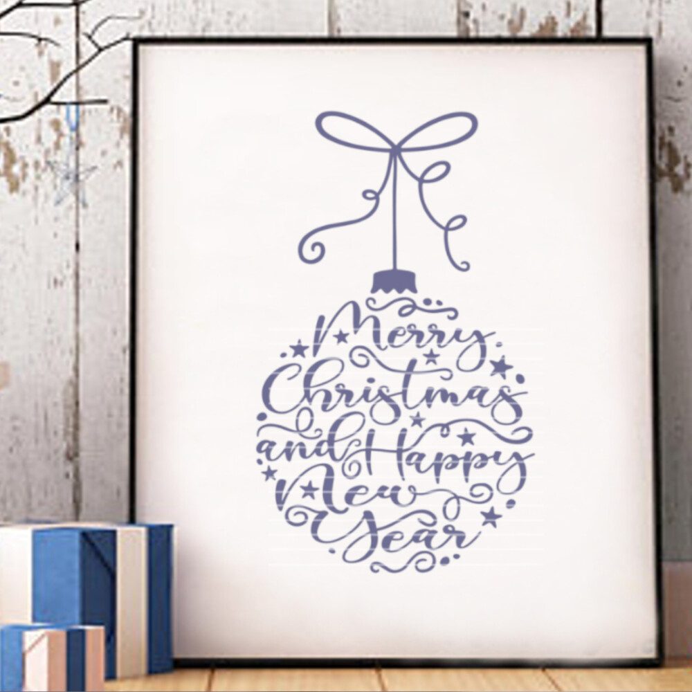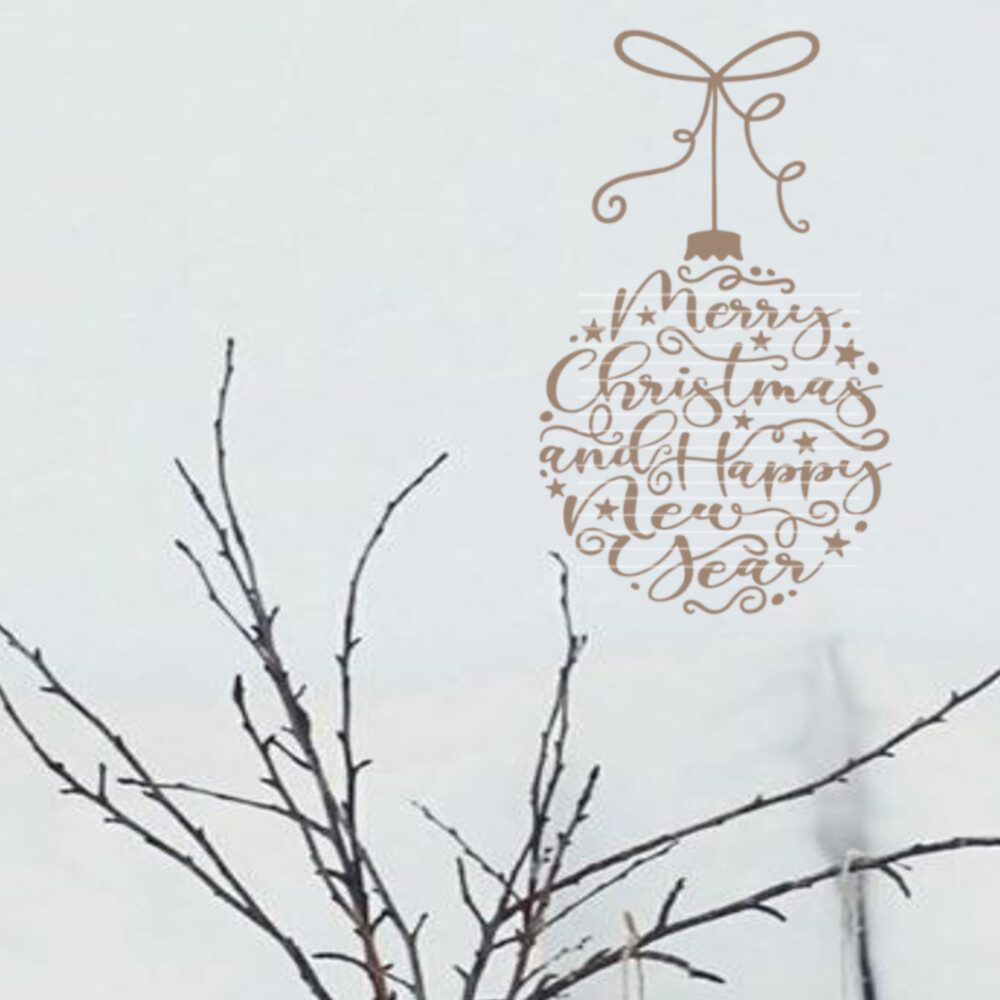 Eine wunderschöne Weihnachtskugel mit dem Text Merry Christmas and Happy New Year