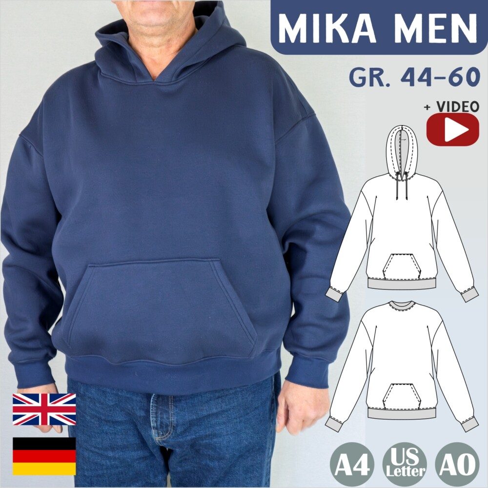 Mika Men – Oversize Hoodie und Sweater Herren, Gr.44-60, A4, Letter+A0
