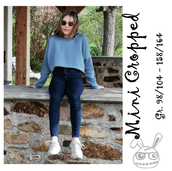 Das Mini-Cropped ist ein wirklich kurzes, weit geschnittenes Shirt, welches nach genauen Angaben meiner präpubertären Tochter entstanden ist. Das Shirt ist ultraknapp, dafür aber lässig weit. Die Ärmellänge ist auf 7/8 bemessen, so dass man sie auch lässig schoppen kann. Um die Länge oder eher Kürze ein kleines bisschen auszugleichen, gibt es ein passendes Kurztop als Freebook zum drunter ziehen dazu. Dieses erreicht zumindest „Bauchnabellänge“ und ist eng anliegend, so dass nichts komplett frei liegen kann ;-) Das Freebook „Croppi“ ist separat erhältlich. Die kleinen Mädels sind begeistert von der „bauchfrei“ Mode und mit ner coolen Highwaist oder Paperbaghose entsteht ganz schnell ein cooles Outfit :-)