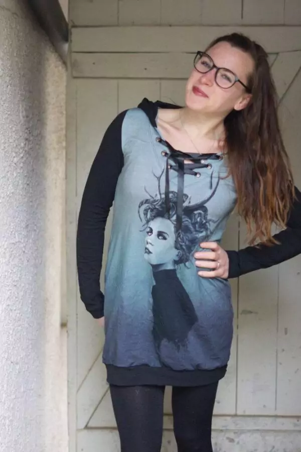 In der Anleitung ist außerdem beschrieben, wie die MissChillover auch ohne Kapuze genäht werden kann.