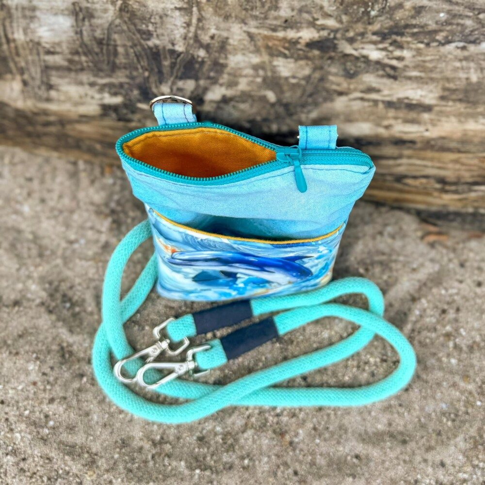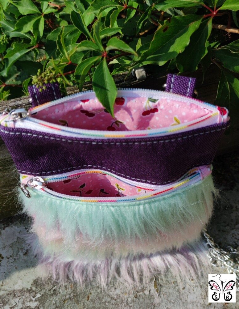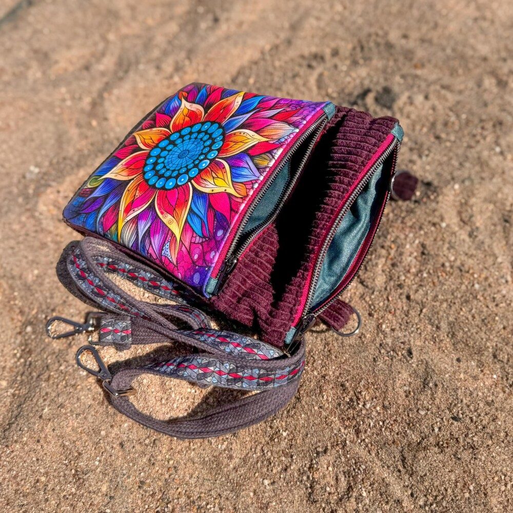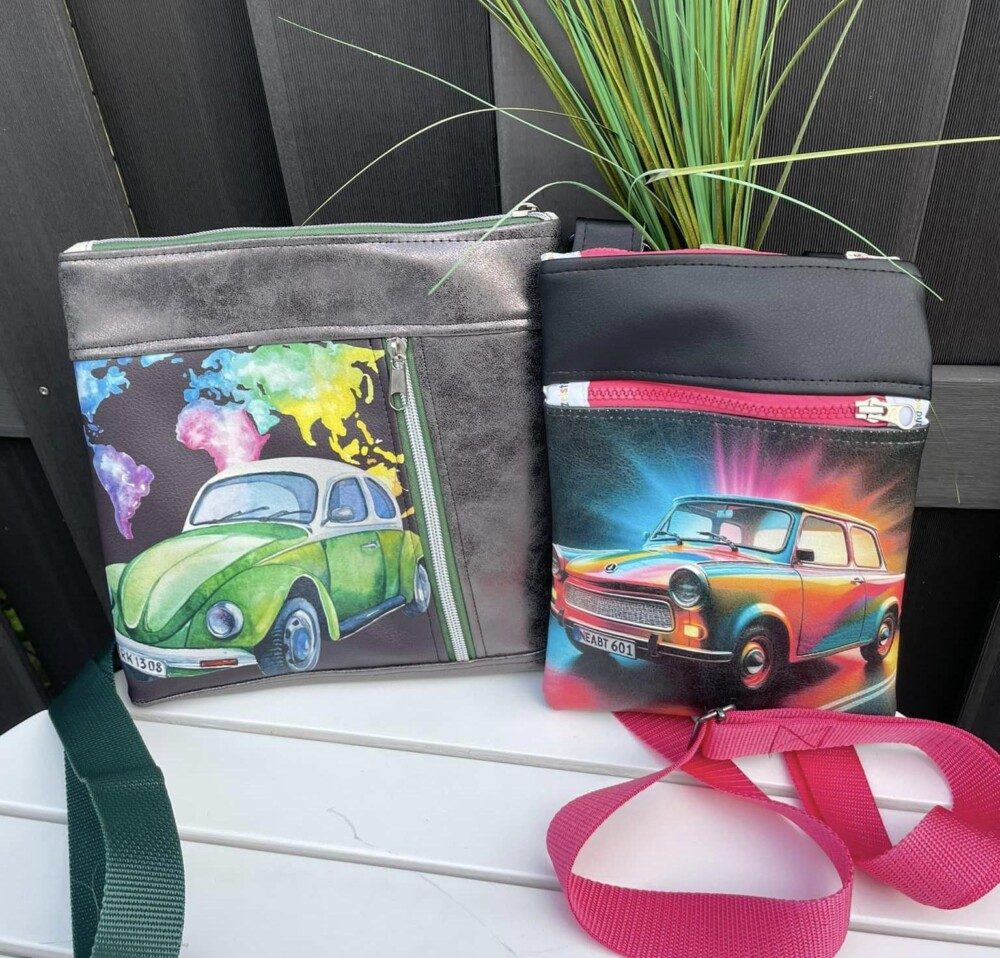 ‚Dorschje‘ ist kleiner und trägt daher lediglich ein paar Kleinigkeiten mit sich rum. Mit ca 23 x 17 cm (HxB) reicht der Platz aber locker für ein großes Smartphone, ein kleines Portemonnaie und die wichtigsten Schlüssel.