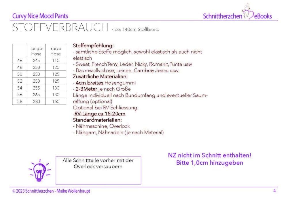 Papierschnittmuster, Curvy Nice Mood Pants Gr. 46 – 58