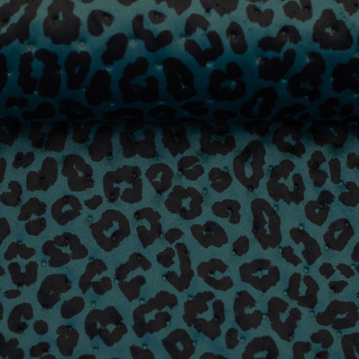 Der Steppsamt Samos von Swafing ist ein echtes Highlight für alle, die beim Nähen gern Akzente setzen! Mit seiner edlen Punktprägung und dem auffälligen Leo-Muster in Petrol und Schwarz vereint dieser Stoff Stil, Struktur und Stabilität auf besondere Weise.