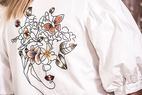 3. Bei dünnen Stoffen ggf. Solufix auch auf der linken Seite aufkleben und Motiv mit einem engen Zick-Zack-Stich nachnähen.