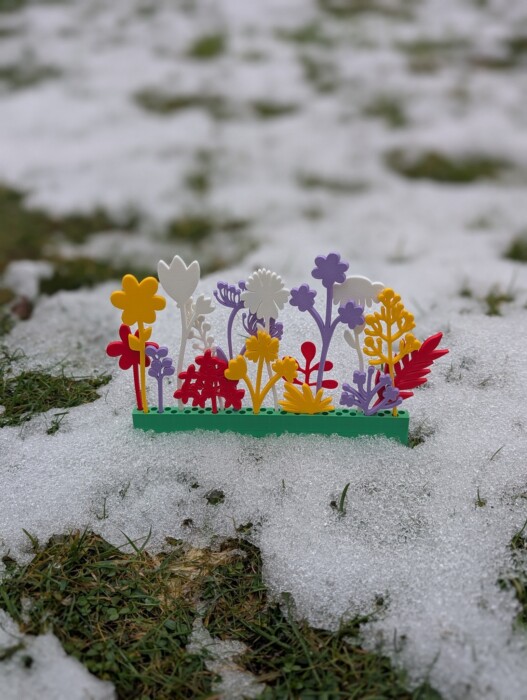 * Basis hochkant und flach mit Löchern zum einstecken der Blumen in Klötzchen-/Stickform als STL und für den Laser