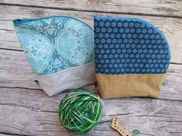 Die Strickzeugtasche Vela hat ihren Namen von der gebogenen Oberkante, die ihr das Aussehen eines Segels verleiht.
