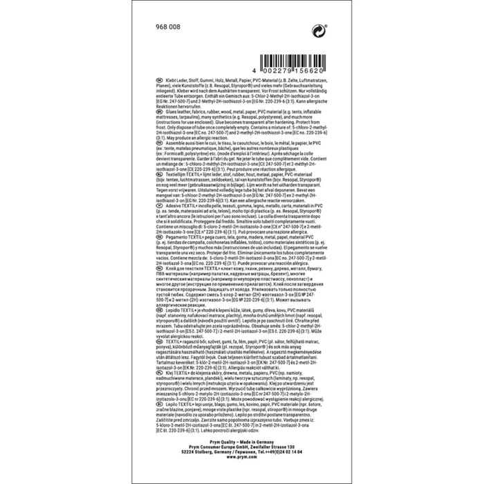 - Universell einsetzbarer Textilkleber ohne Lösungsmittel