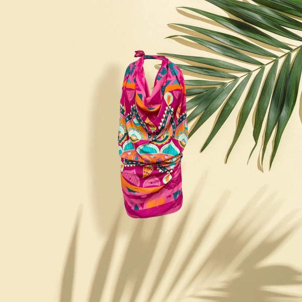 Und natürlich kann der Pareo als Dreieckstuch oder Schal zum Einsatz kommen, und wenn du dein Strandlaken vergessen hast oder unterwegs ein Picknick machen möchtest, kannst du auch noch dessen Vorzüge als dekorative Unterlage genießen.