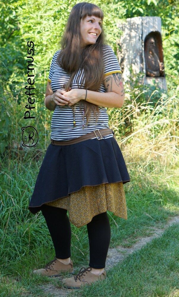 Der Zipfelrock ist ein asymmetrischer Rock in doppelter Stofflage, der aus einer Vielzahl an Stoffen genäht werden kann. Ob nun sommerlich aus Musselin oder Viskose, oder kuschelig warm aus Sweat – der Zipfelrock ist ein Begleiter für das ganze Jahr.